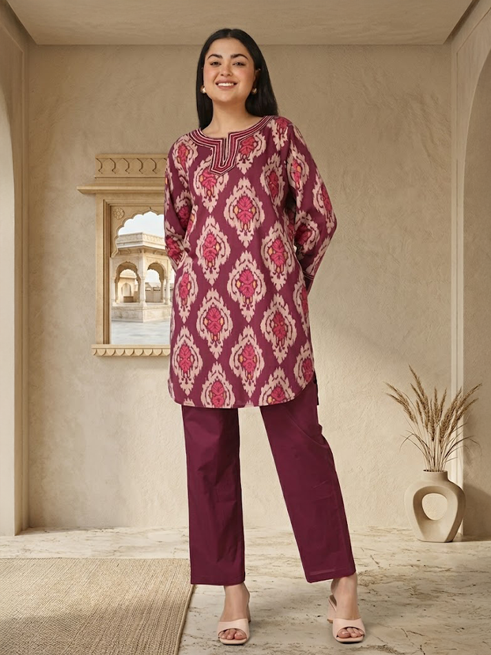 An elegant pure organic cotton co-ord set crafted for comfort with a touch of heritage...