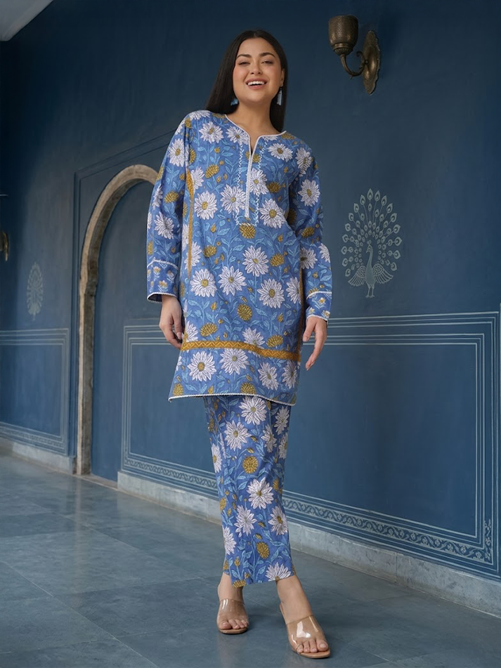 Sky Serenity Hand Block Printed Organic Cotton Co-ord Set