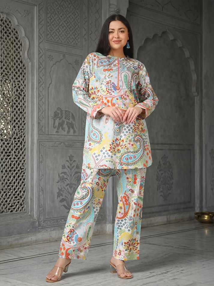 A stylish and comfortable pure organic cotton co-ord set designed for effortless everyday elegance. Featuring...