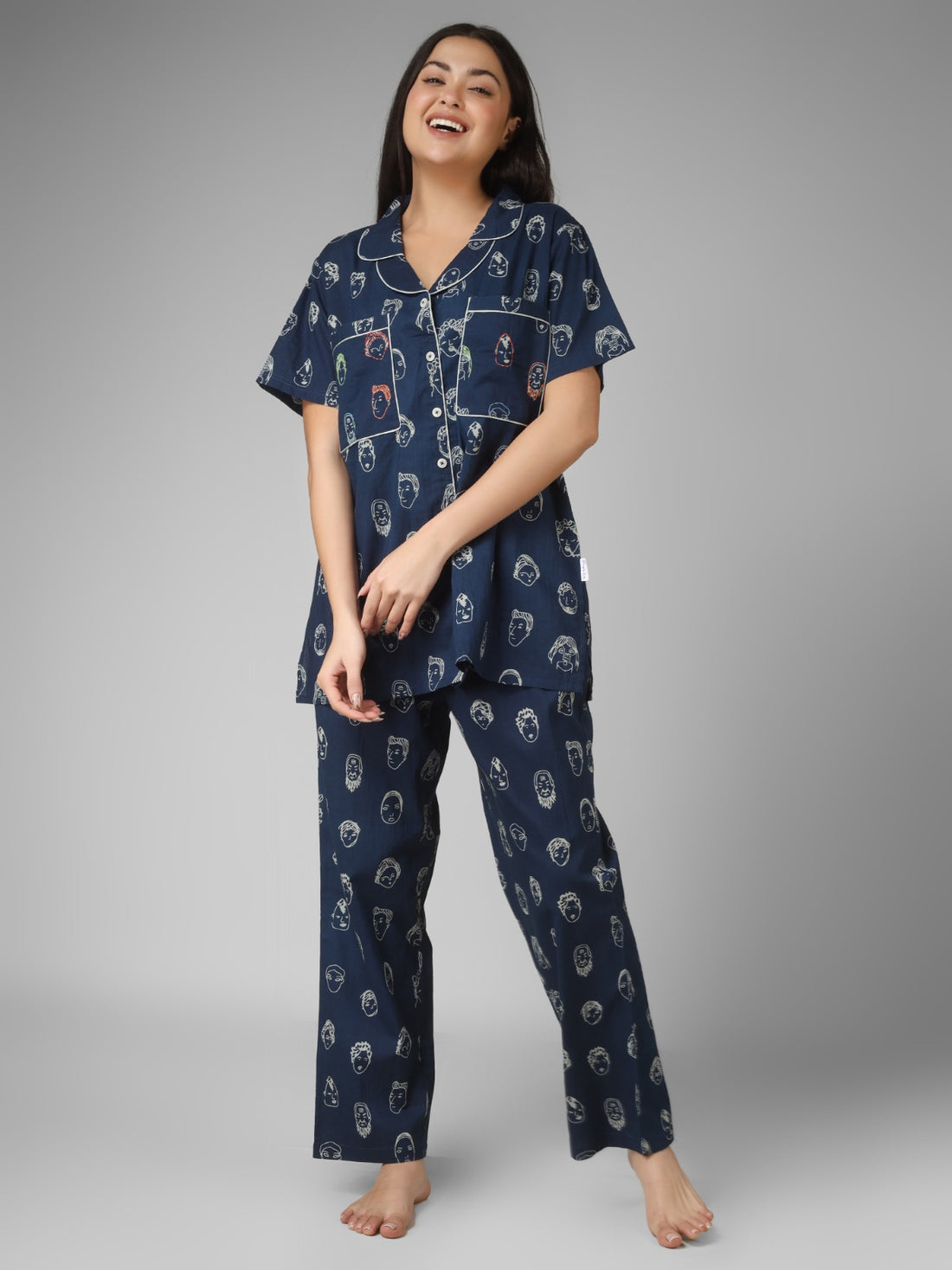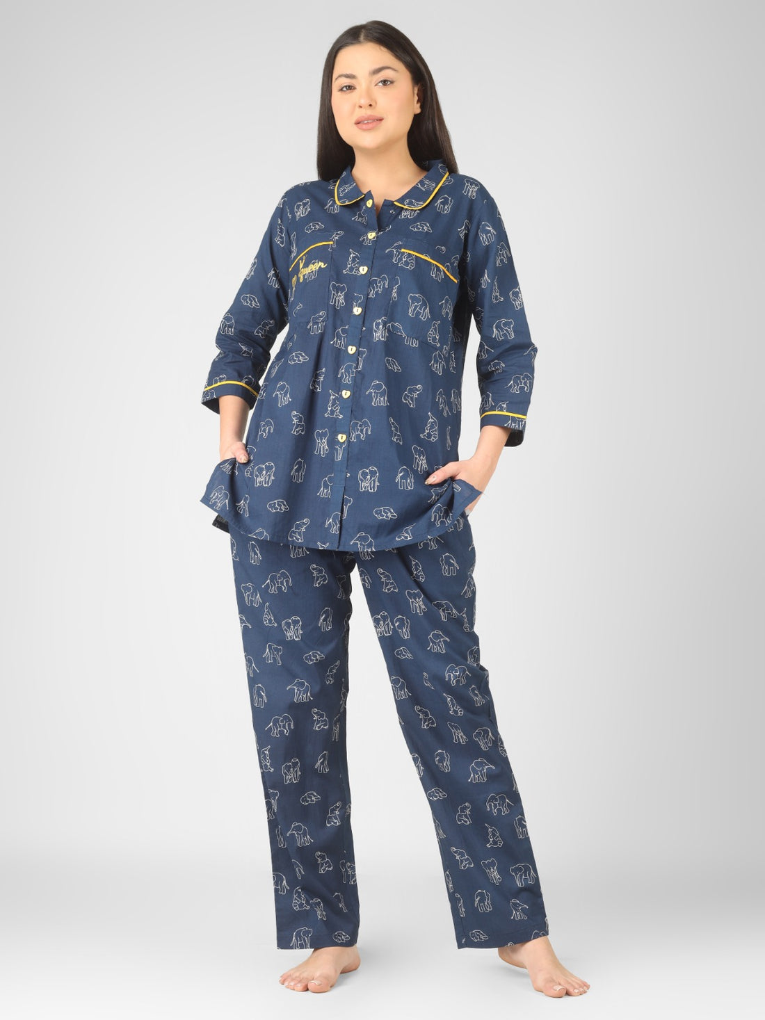 Relax in effortless elegance with this Indigo Dream Cotton Nightsuit. Crafted from breathable organic cotton...