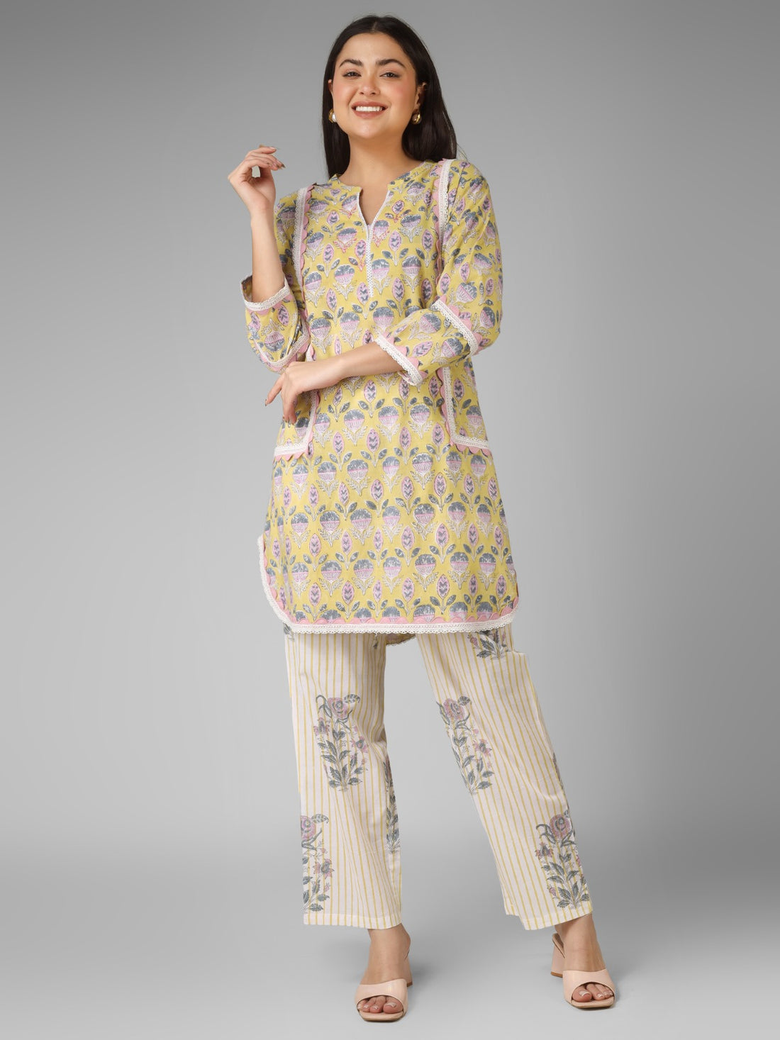 A fresh burst of sunshine in soft organic cotton, this hand block print co-ord set...