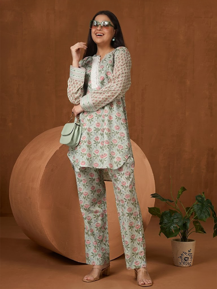 Mint Harmony Hand Block Printed Organic Cotton Co-ord Set