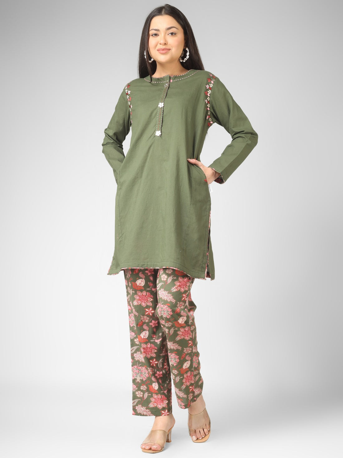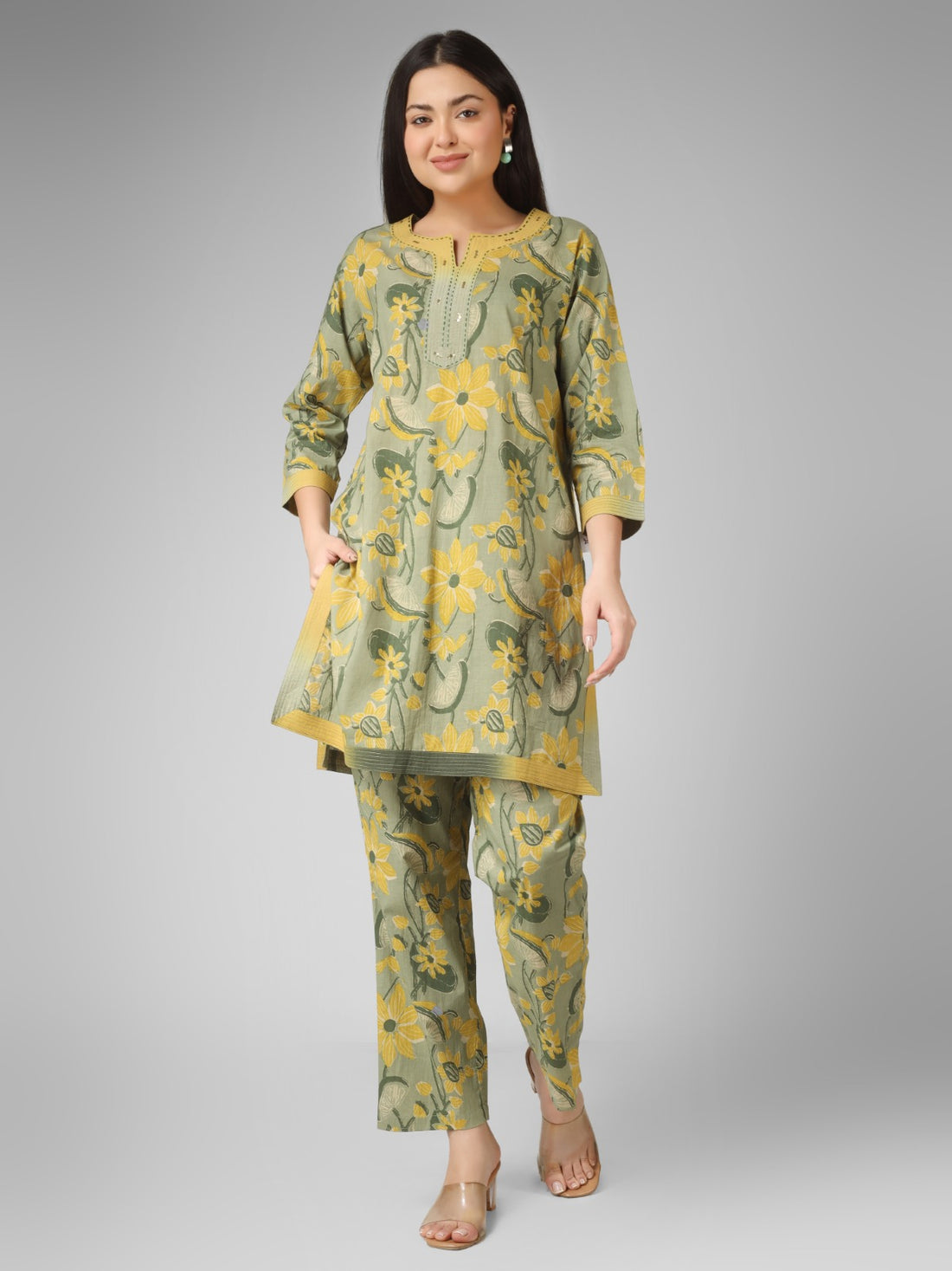 Olive Bloom Organic Cotton Printed Co-ord Set