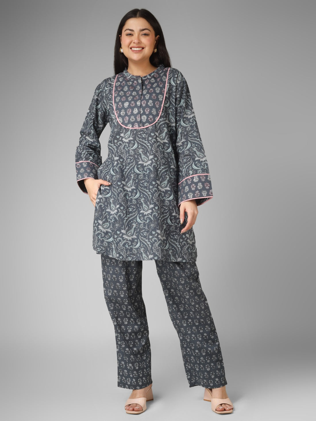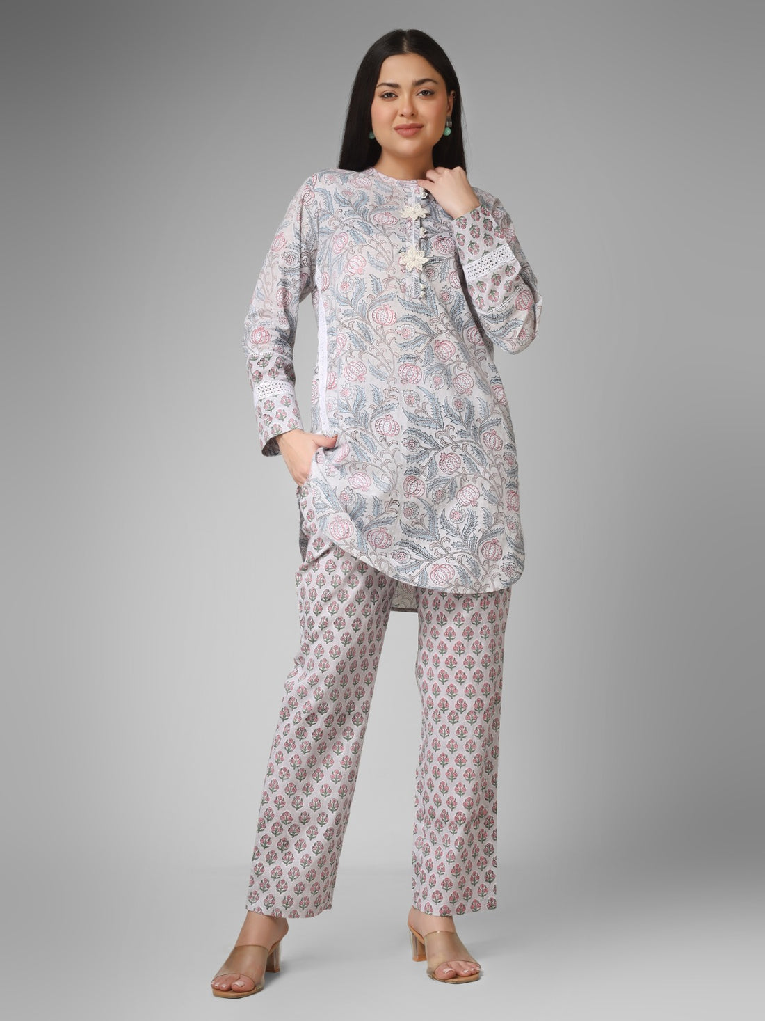 Grey Elegance Hand Block Printed Organic Cotton Co-ord Set