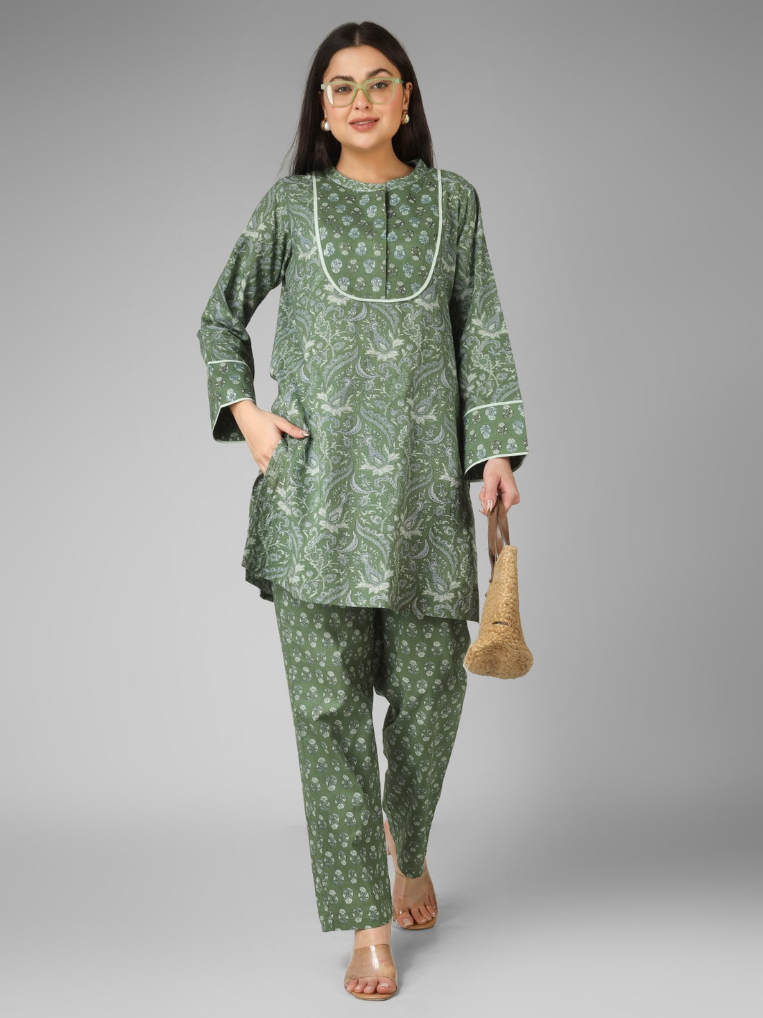 A soothing green pure organic cotton co-ord set designed for effortless comfort and timeless elegance....