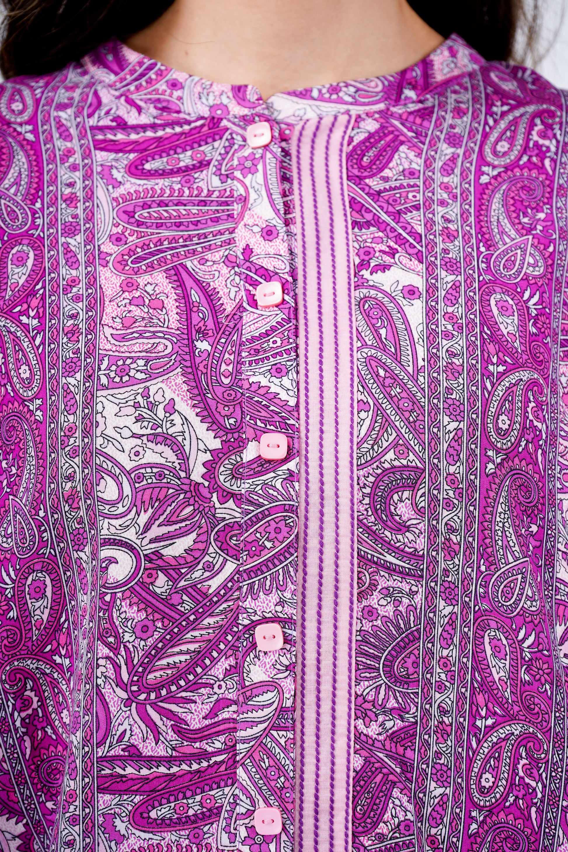 Chill in style with our Amethyst Paisley Nightsuit Set! Perfect for the upcoming cool season, this soft rayon set keeps you cozy all year long. The stunning purple paisley-inspired print radiates rich & luxe vibes. It's your go-to for relaxed, stylish nights—every single month!