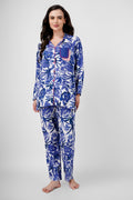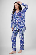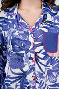 Dive into relaxed elegance with the Azure Nightsuit Set. Its vibrant floral print, complemented by contrasting pink pockets and buttons, adds a playful touch to your lounging and sleepwear — making every night feel chic and carefree.