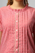 Blush Belle Nightsuit Set adds a hint of romance to your nights. Soft pink florals, delicate pleats, and lace-accented frills create a feminine, charming look, while a relaxed fit with handy pockets ensures effortless comfort. Perfect for lounging in style or winding down into a peaceful night.