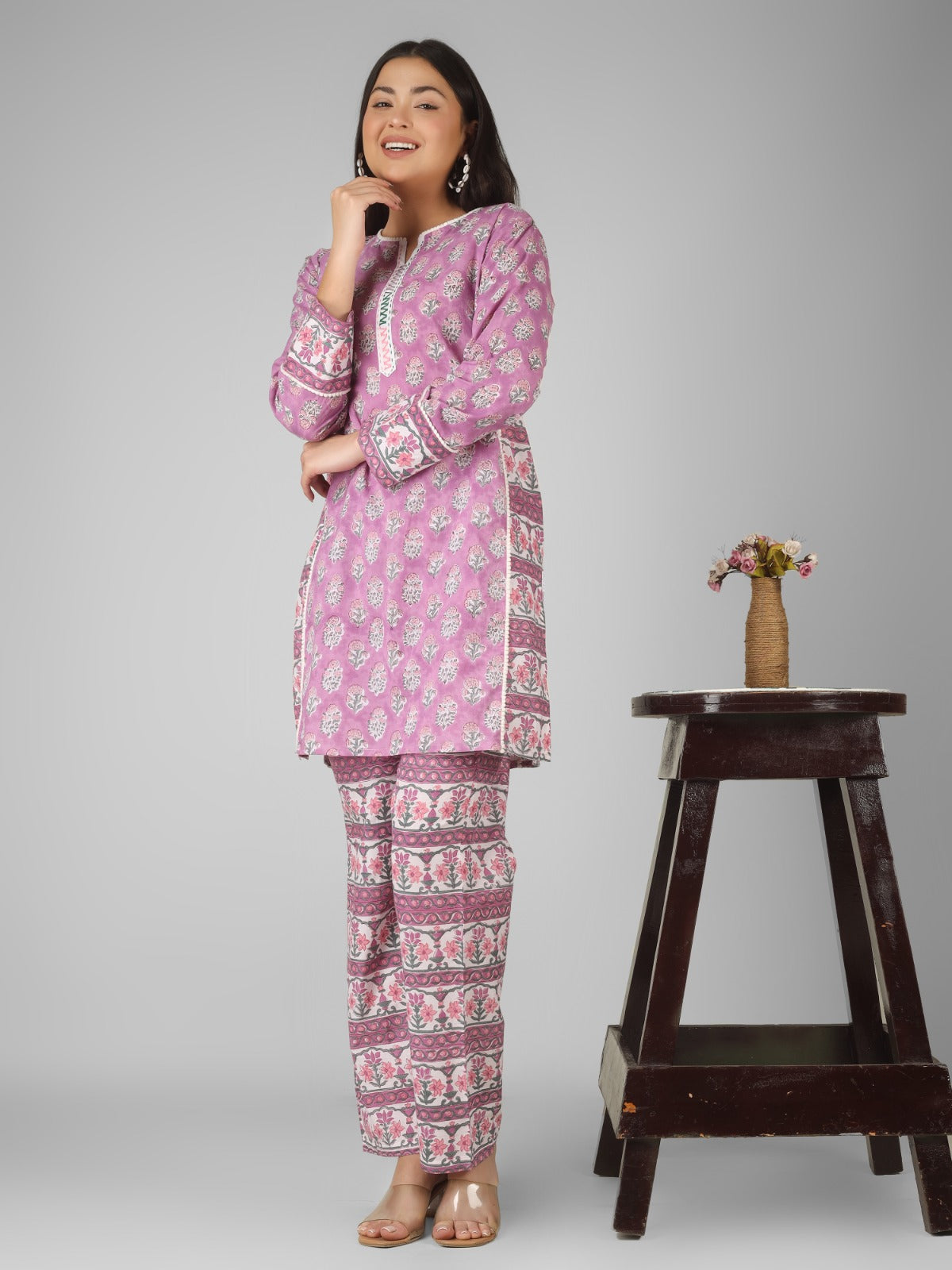 Blush Bloom Hand Block Printed Organic Cotton Co-ord Set