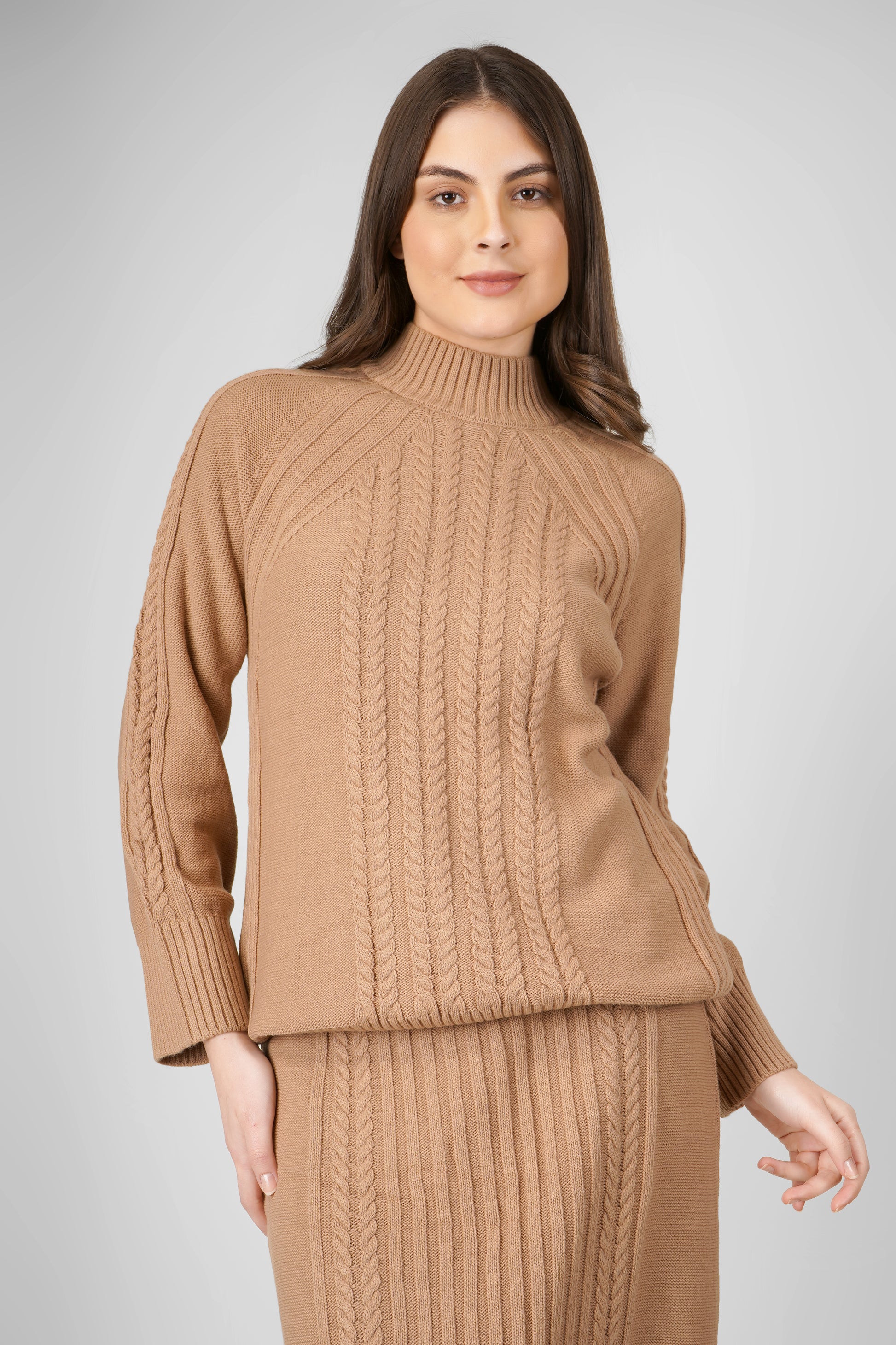 Caramel Knit Elegance Woollen Skirt Co-ord Set