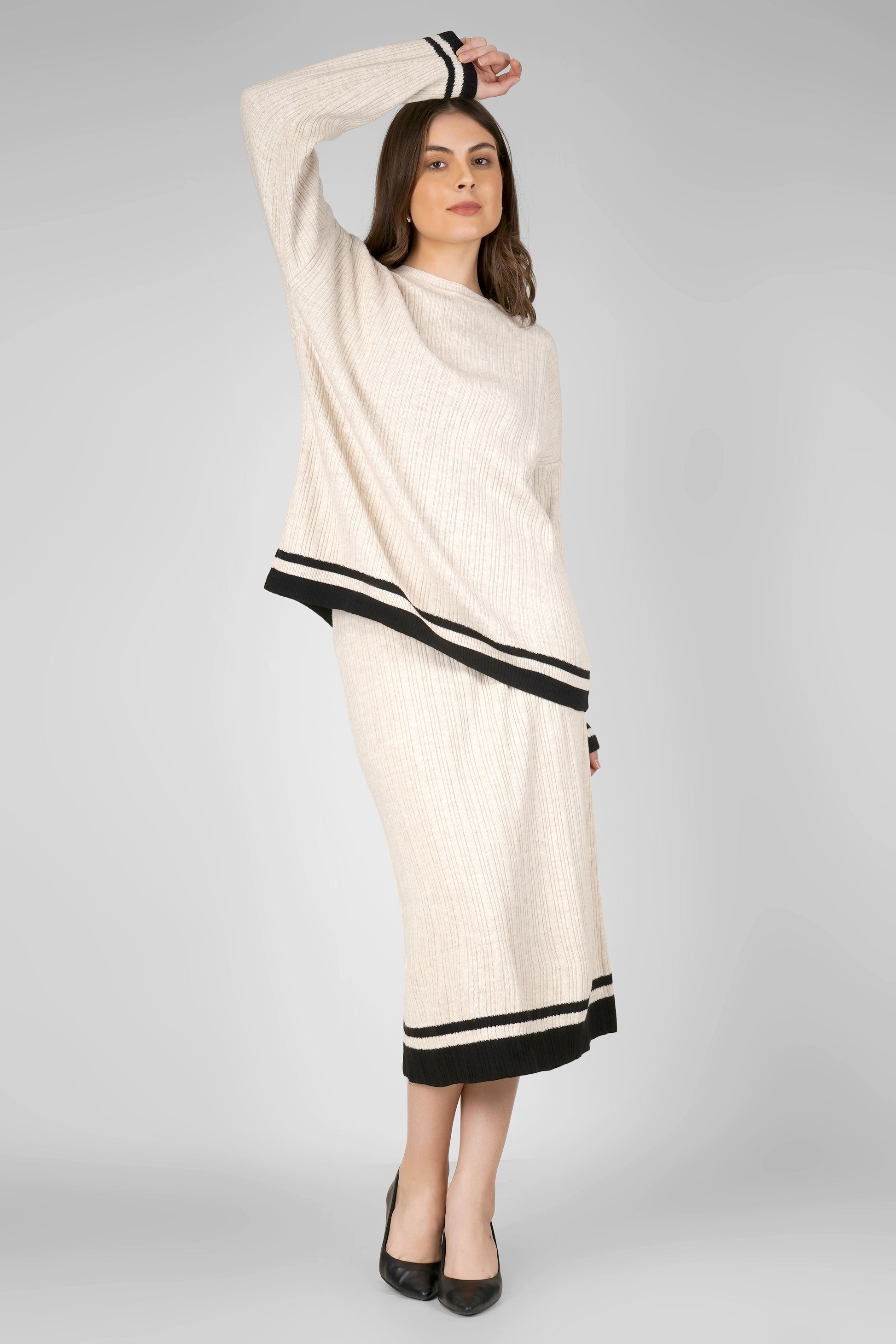 Cream Noir Ribbed Woollen Skirt Co-ord Set