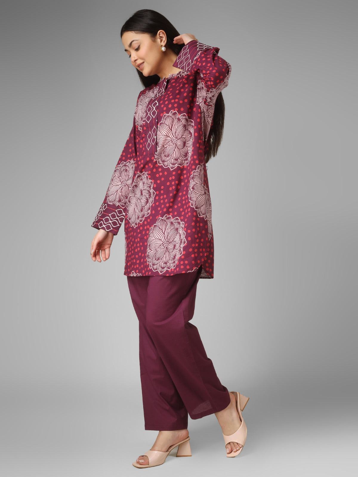 A stylish and comfortable pure organic cotton co-ord set designed for effortless everyday elegance. Featuring beautiful embroidery on the back, placket and cuffs, this soft and breathable outfit blends traditional craftsmanship with a modern, trendy silhouette—perfect for relaxed yet refined wear.
