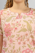 Indulge in dreamy elegance with our Golden Petal Handcrafted Nightsuit Set – where comfort meets artistry. Designed on a soft baby pink canvas, this set blooms with bright pink florals delicately intertwined with leafy vines, offering a romantic yet refreshing look. Subtle touches of gold foiling add a graceful shimmer, while the neckline is hand-finished with intricate threadwork that elevates the overall charm.