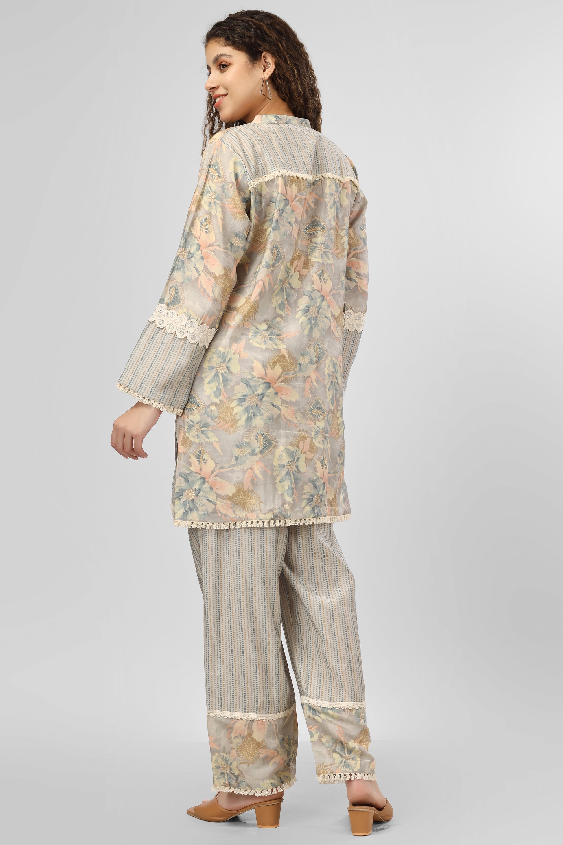 - Delicate lace detailing on sleeves, neckline, hem & pants for a refined touch