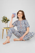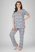Indigo Leaf Embroidery Nightsuit captures effortless elegance and artisanal charm. Intricate embroidery and graceful design details create a soothing, stylish look, perfect for relaxing evenings or serene mornings. Every moment in this nightsuit feels cozy, refined, and effortlessly chic.