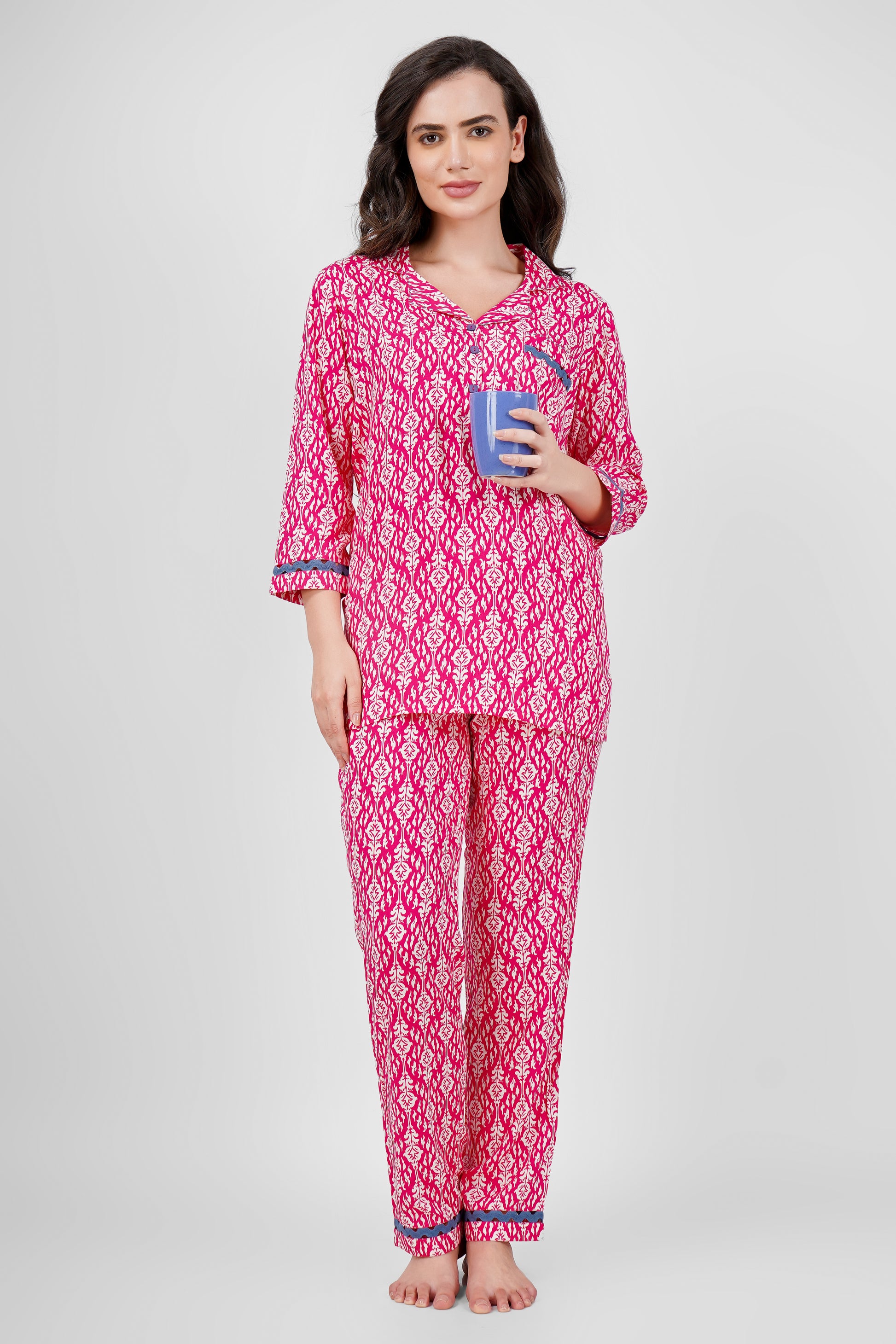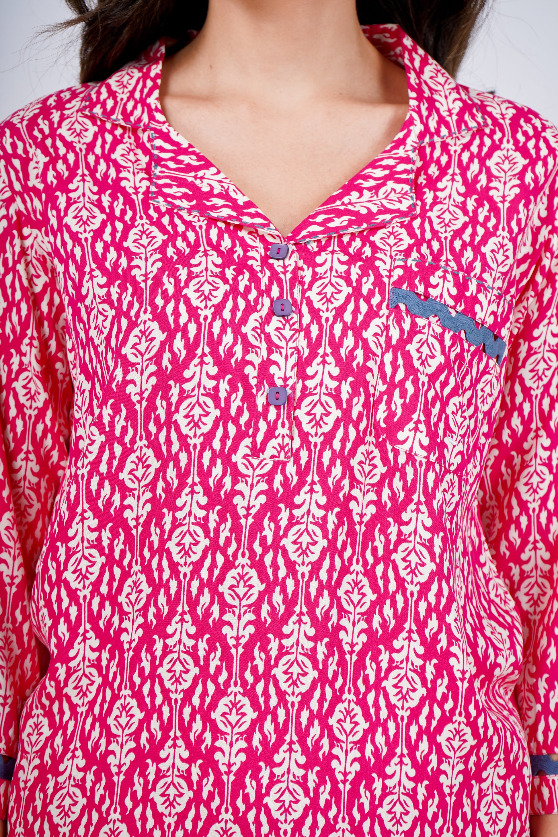 Embrace cozy elegance with the Luna Dreams Nightsuit. Perfect for restful nights and relaxed mornings, its versatile style makes it your go-to for lounging or casual comfort, all wrapped in soft, breathable cotton-rayon fabric with charming contrasting lace details.