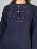 Rich, deep, and effortlessly refined — the Midnight Muse Fleece Co-ord Set captures the quiet charm of winter evenings. Crafted from heavy woollen fleece, it drapes beautifully while keeping you cocooned in warmth. The hand-embroidered yoke and fine artisanal touches on the sleeves lend a hint of understated luxury. Elegant yet easy, this set is made for those who love cozy comfort with a polished, timeless edge.