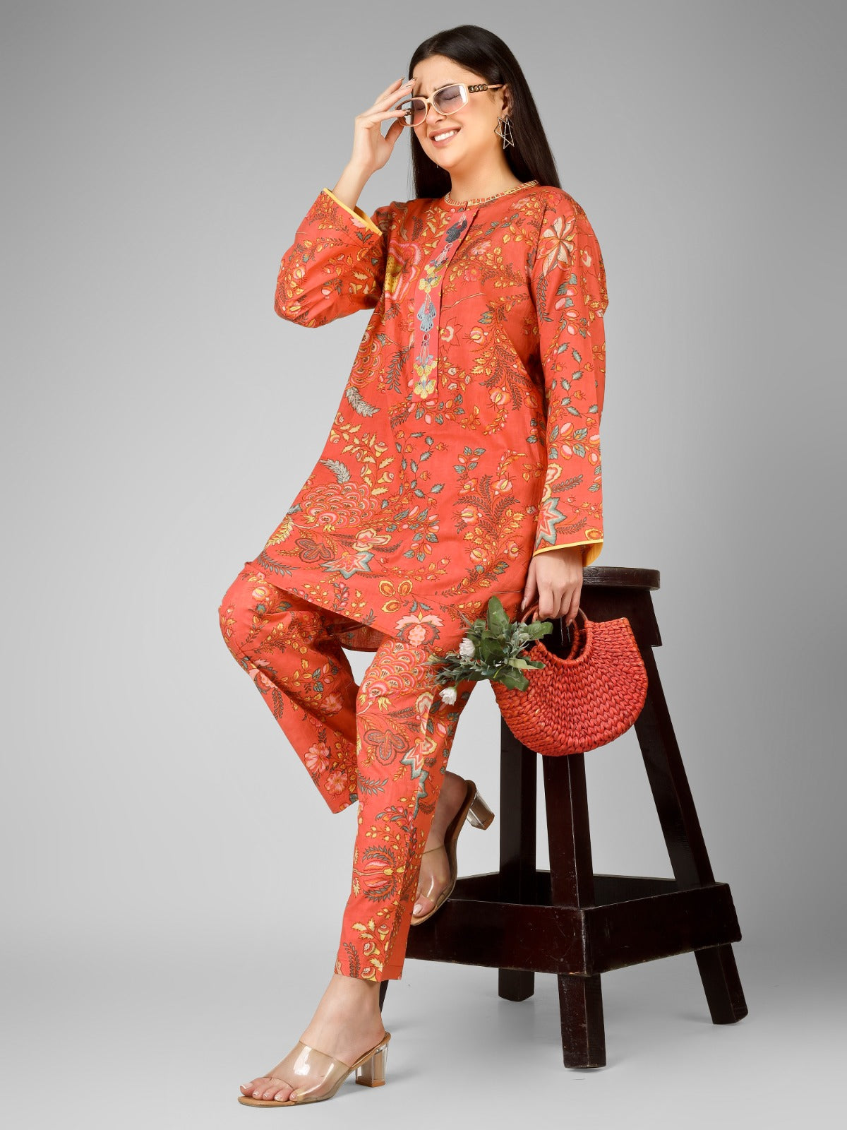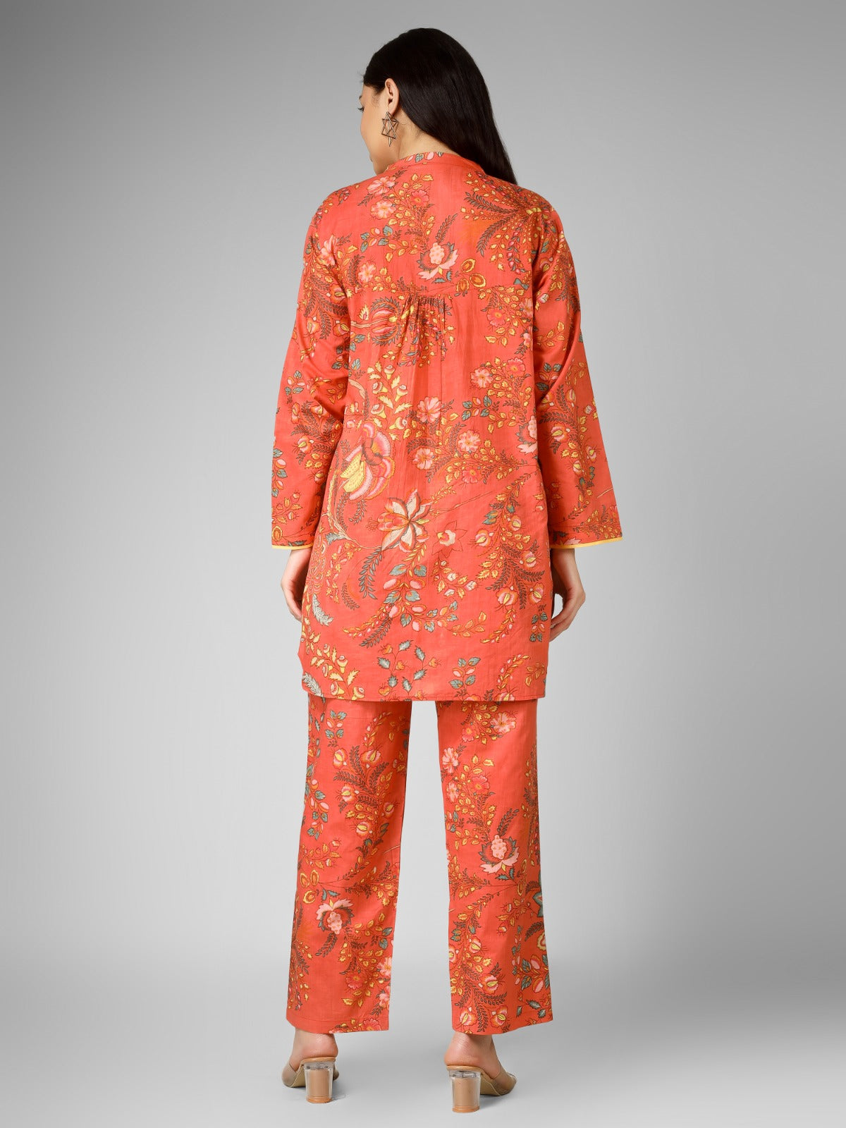 A vibrant, floral cotton co-ord set crafted for effortless elegance-now with a graceful farshi salwar option for a timeless, flowy silhouette. Soft, breathable, and perfect for all-day comfort with a touch of tradition.