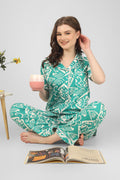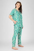 Unwind in effortless style with this Teal Dream Nightsuit Set, designed in a refreshing abstract print. Crafted from soft, breathable fabric, it keeps you comfortable through the night while the vibrant teal hue adds a calming touch to your wardrobe. A modern mix of white patterns gives it a chic, contemporary edge—perfect for both lounging and sleeping.