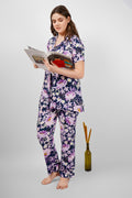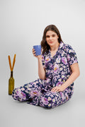 Our Twilight Flora Nightsuit Set brings elegance and comfort together in the softest cotton. A navy base adorned with lilac and purple florals creates a timeless, enchanting look, while the collared buttoned top pairs seamlessly with matching full-length bottoms. Luxuriously soft and ever-comfortable, it’s perfect for dreamy nights and relaxed mornings.
