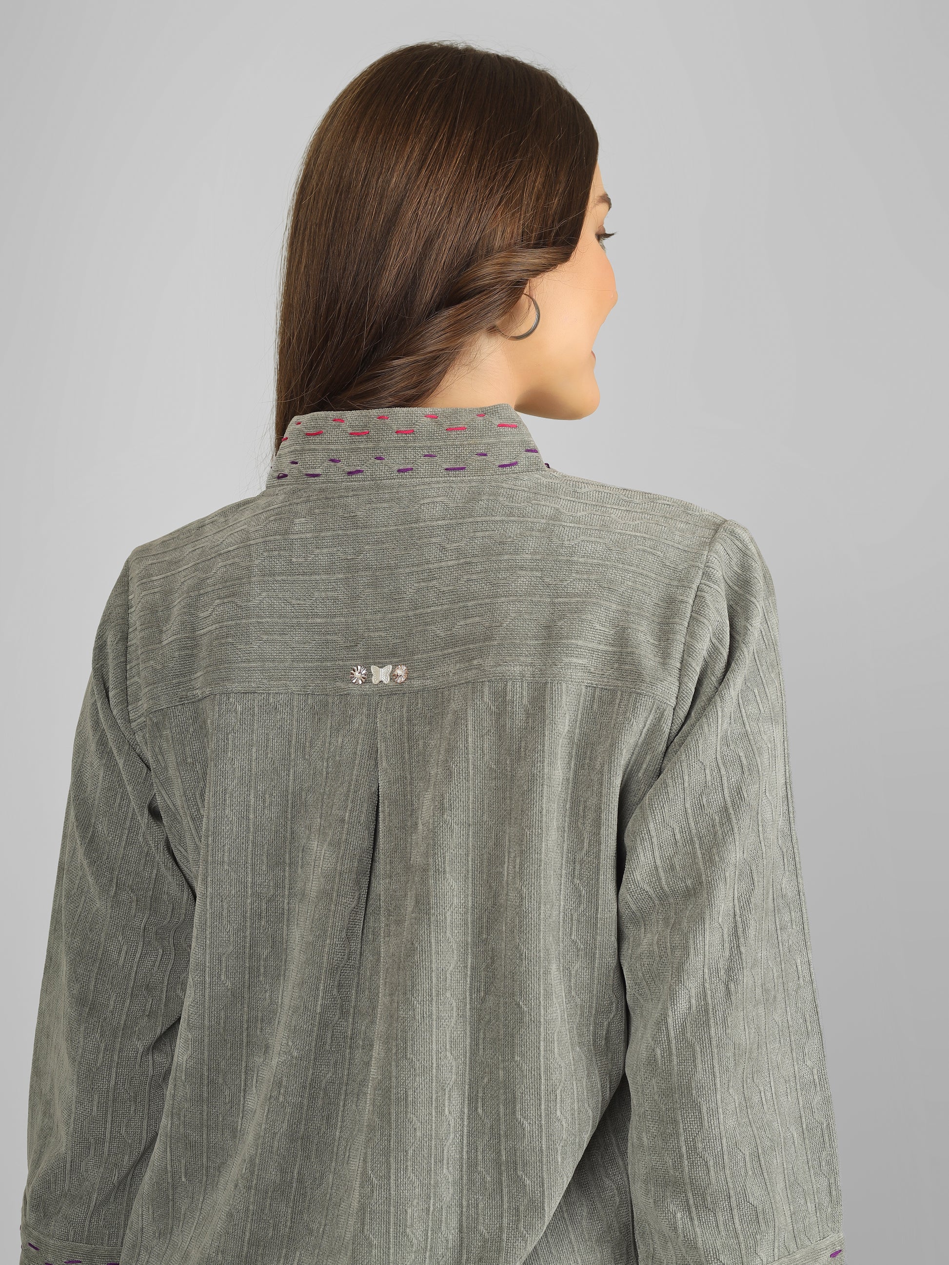 - Hand-embroidered detailing on neckline and sleeves